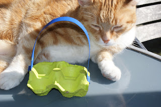 Ik maakte met de peuters afgelopen week dit zeer gemakkelijk te maken paasmandje. Het is gemaakt van die platte eierdozen...hoe heten ze ook maar weer?